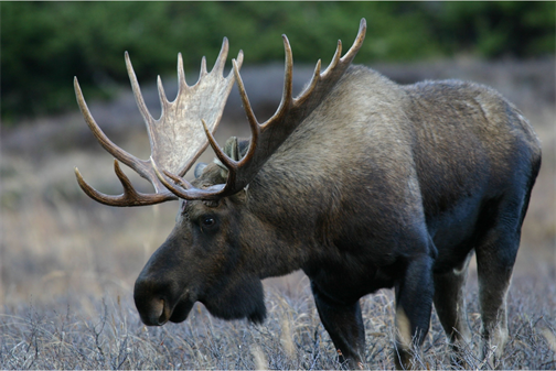Moose have large shovel-shaped antlers which are bony outgrowths of the frontal bones of their skull a characteristic shared with other species in the deer family. The antlers of moose only develop on male animals.