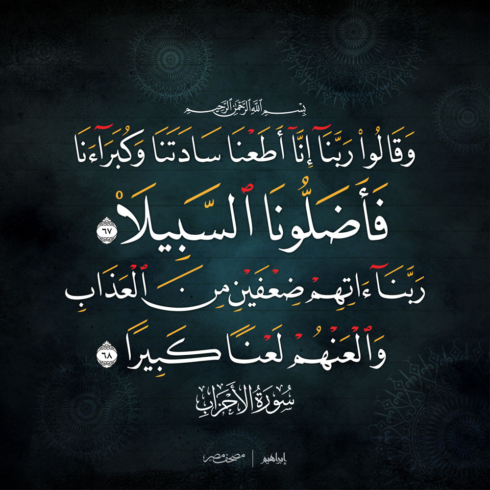{وقالُوا رَبَّنا إِنَّا أَطَعْنا سادَتَنا وكُبَراءَنا فَأَضَلُّونَا السَّبِيلَا رَبَّنا آتِهِمْ ضِعْفَيْنِ مِنَ الْعَذابِ والْعَنْهُمْ لَعْناً كَبِيراً} . المراد بالسادة والكبراء زعماء الدين والدنيا ، وباللعن الخزي . . وقد أحال الضعفاء الذنب على القادة من الطرفين ، وطلبوا من اللَّه ان يضاعف لهم العذاب . . ومن دقق التاريخ رأى أن الأمة الجاهلة يقودها - في الغالب - الطغاة والعتاة ، أما أهل الوعي والمعرفة فإنهم لا يأتمنون على مصالحهم إلا الأمناء المخلصين .