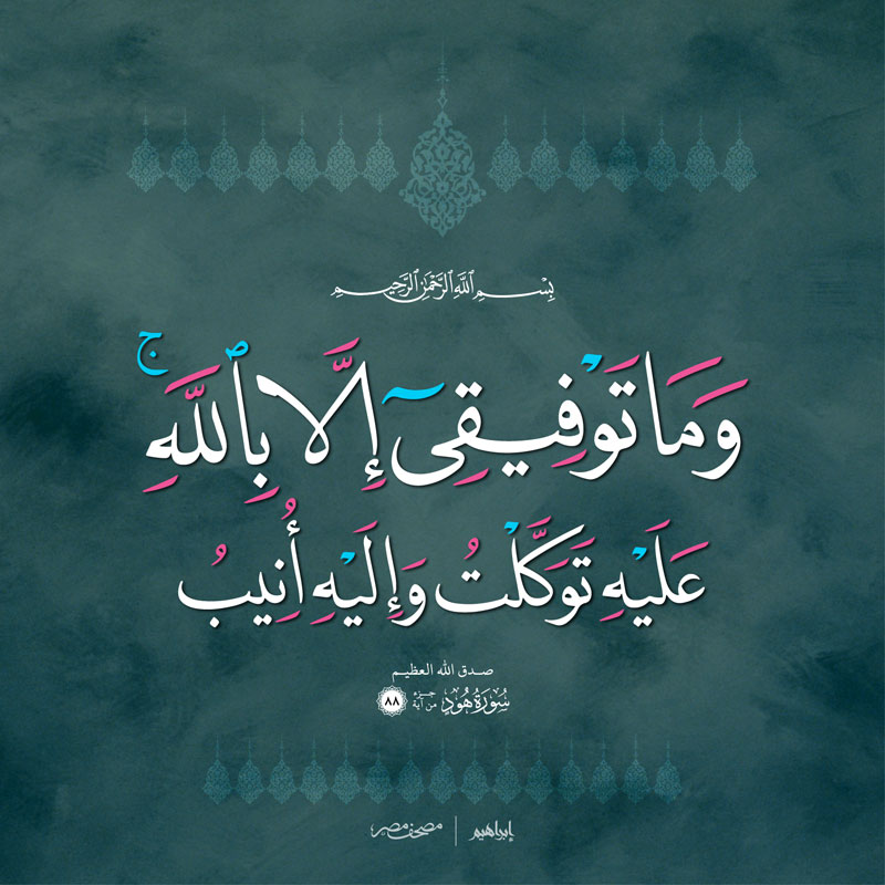 { وَمَا تَوْفِيقِي إِلَّا بِاللَّهِ }معناه : وليس توفيقي في امتثال ما آمركم به والانتهاء عما أنهاكم عنه إلا بالله فلا يوفق غيره أي وليس ما أفعله بحولي وقوتي بل بمعونة الله ولطفه وتيسيره { عَلَيْهِ تَوَكَّلْتُ} والتوكل على الله الرضا بتدبيره مع تفويض الأمور إليه والتمسك بطاعته { وَإِلَيْهِ أُنِيبُ} أي : وإليه أرجع في المعاد عن مجاهد وقيل إليه أرجع بعملي ونيتي عن الحسن ومعناه إني أعمل أعمالي كلها لوجه الله .