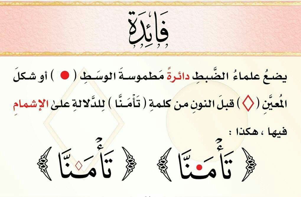 يقول الداني :«وأما حقيقة الإشمام فهو ضمك شفتيك بعد سكون الحرف أصلا ولا يدرك معرفة ذلك الأعمى لأنه لرؤية العين لا غير إذ هو إيماء بالعضو إلى الحركة» ويقول الحصري :«هو ضم الشفتين بلا صوت عقب إسكان الحرف إشارة إلى أن الحركة المحذوفة ضمة. ويؤخذ من هذا أنه لا بد من اتصال ضم الشفتين بإسكان الحرف من غير تراخ، فلو تراخى فإسكان مجرد» ويختص الإشمام بالضمة فقط. وعند الوقف عليها يكتفي فقط بتدوير الشفتين إشارة إلى صائت الضمة دون أن يحدث صوت كما ذكر علماء التجويد والقراءات.