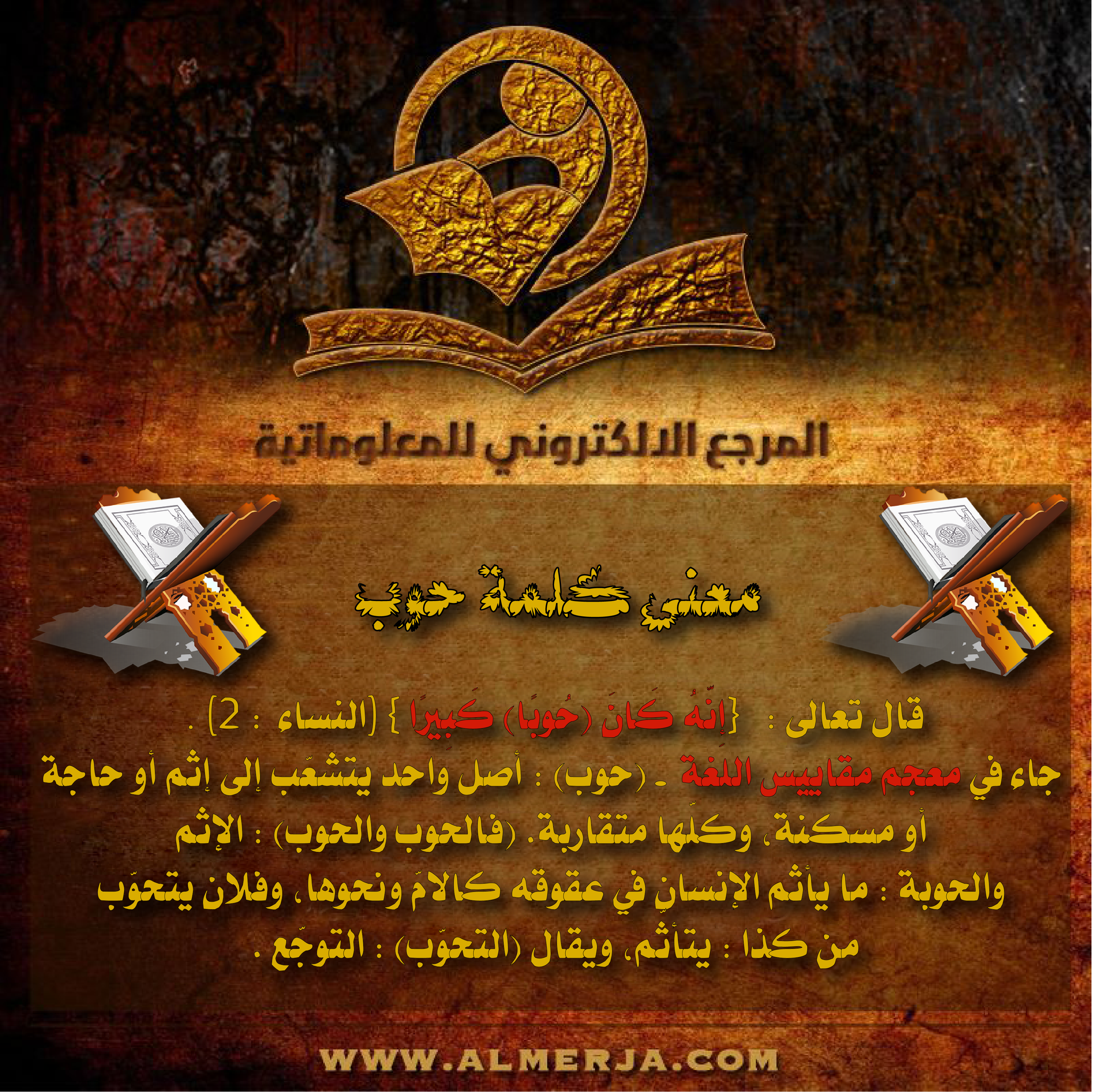قال تعالى : {إِنَّهُ كَانَ (حُوبًا) كَبِيرًا } [النساء : 2] .