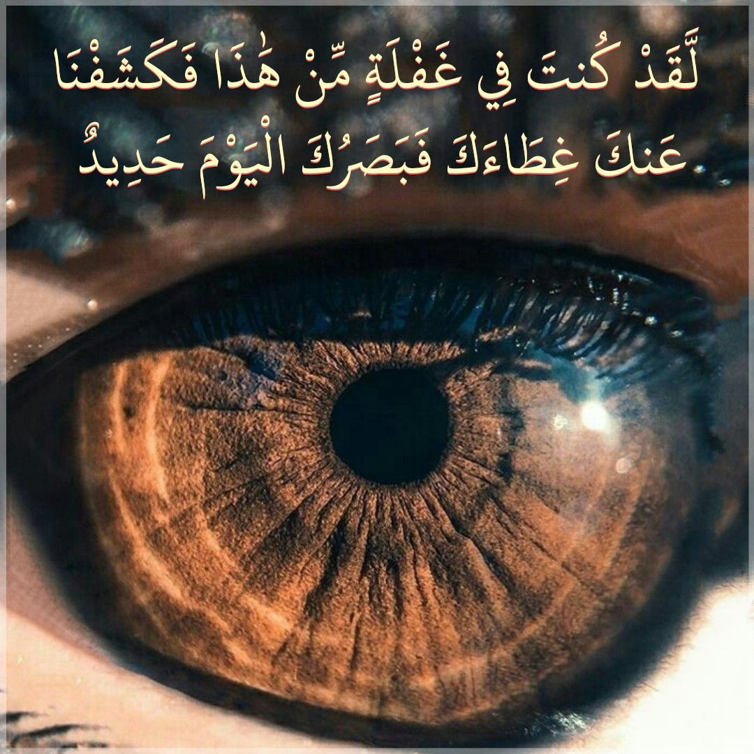 قال تعالى: {لَقَدْ كُنْتَ فِي غَفْلَةٍ مِنْ هَذَا فَكَشَفْنَا عَنْكَ غِطَاءَكَ فَبَصَرُكَ الْيَوْمَ حَدِيدٌ} [ق: 22].