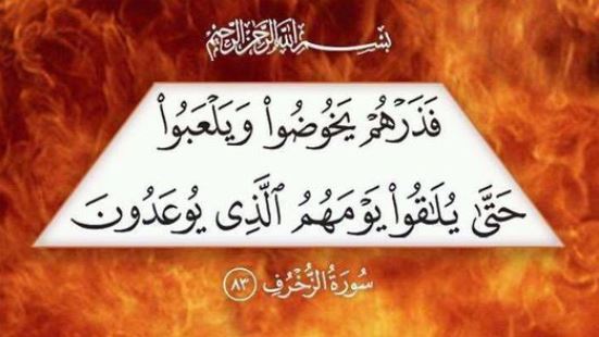 قال تعالى: {فَذَرْهُمْ يَخُوضُوا وَيَلْعَبُوا حَتَّى يُلَاقُوا يَوْمَهُمُ الَّذِي يُوعَدُونَ} [الزخرف: 83].