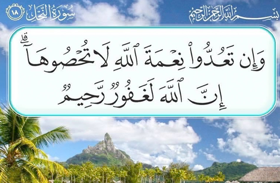 قوله تعالى: {وَإِنْ تَعُدُّوا نِعْمَةَ اللَّهِ لَا تُحْصُوهَا} [النحل: 18].