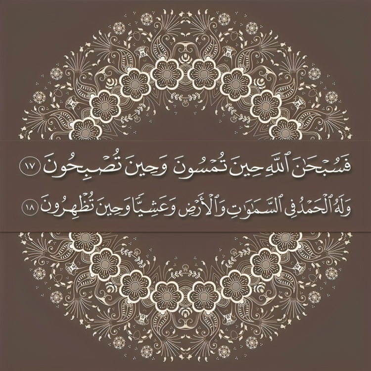 قال تعالى: {فَسُبْحَانَ اللَّهِ حِينَ تُمْسُونَ وَحِينَ تُصْبِحُونَ * وَلَهُ الْحَمْدُ فِي السَّمَاوَاتِ وَالْأَرْضِ وَعَشِيًّا وَحِينَ تُظْهِرُونَ} [الروم: 17، 18].