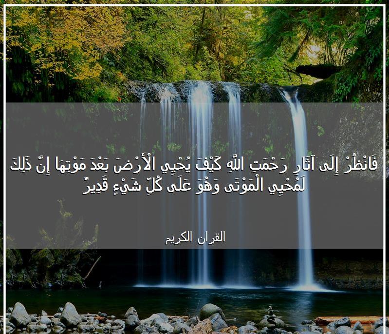 { فَانْظُرْ إِلى آثارِ رَحْمَتِ اللَّهِ كَيْفَ يُحْيِ الأَرْضَ بَعْدَ مَوْتِها إِنَّ ذلِكَ لَمُحْيِ الْمَوْتى وهُو عَلى كُلِّ شَيْءٍ قَدِيرٌ } . المراد برحمة اللَّه هنا المطر ، وبآثاره إحياء الأرض بعد موتها ، وهذا الإحياء ثابت بالعيان ، وهو دليل قاطع ومحسوس على أن فكرة البعث والإحياء بعد الموت من حيث هي صحيحة لا تقبل الشك ، لأن العاقل إذا تنبه وتدبر إحياء الأرض بعد موتها لا بد أن يسلم ويؤمن بفكرة البعث كفكرة ، وإلا كان من الذين يجمعون بين الايمان بوجود الشيء والايمان بعدمه في آن واحد .