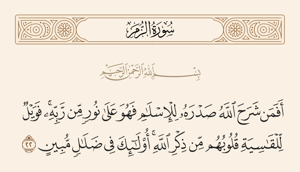 عن عطاء في قوله تعالى: {أفمن شرح الله صدره للإسلام فهو على نور من ربه} قال نزلت في علي (عليه السلام) وحمزة {فويل للقاسية قلوبهم من ذكر الله} في أبي جهل وولده(1).
