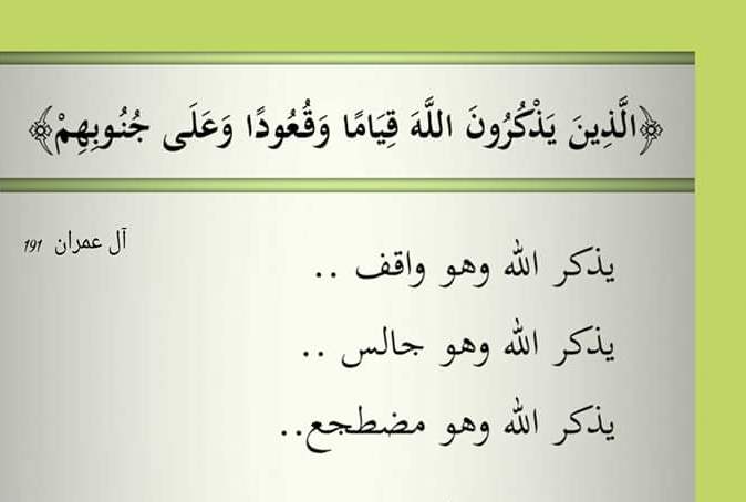 {الَّذِينَ يَذْكُرُونَ اللَّهَ قِيَامًا وَقُعُودًا وَعَلَى جُنُوبِهِمْ} [آل عمران : 191].
