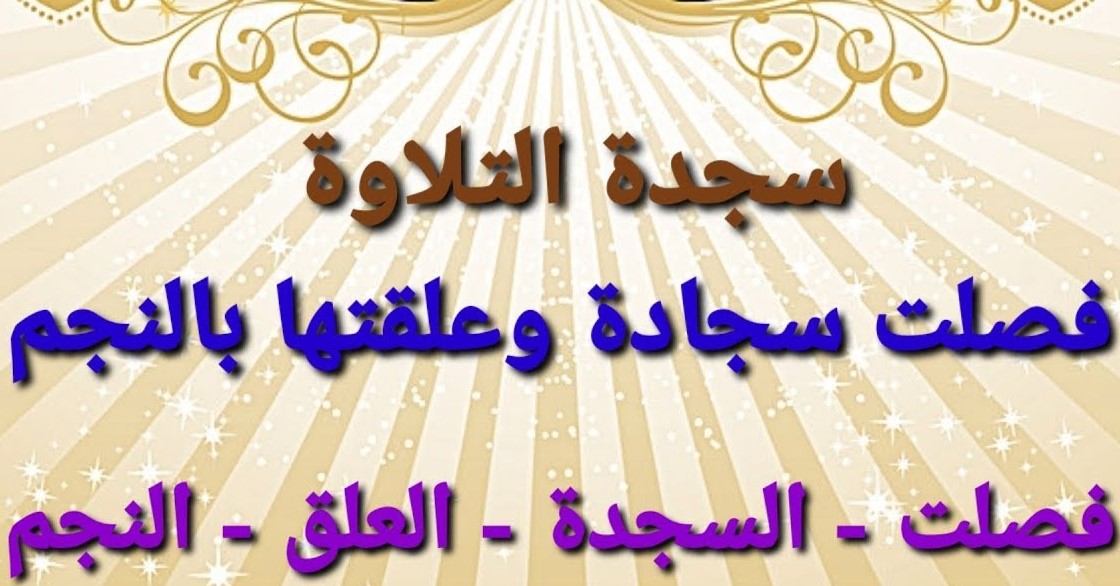 هل تعلم أن: يجب عليك السجود عند قراءتك أو سماعك لإحدى الآيات التالية: آية 15 من سورة السجدة وآية 37 من سورة فصلت وآية 62 من سورة النجم وآية 19 من سورة العلق؟
