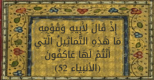 قال تعالى : { إِذْ قَالَ لِأَبِيهِ وَقَوْمِهِ مَا هَذِهِ التَّمَاثِيلُ الَّتِي أَنْتُمْ لَهَا عَاكِفُونَ (52)}
