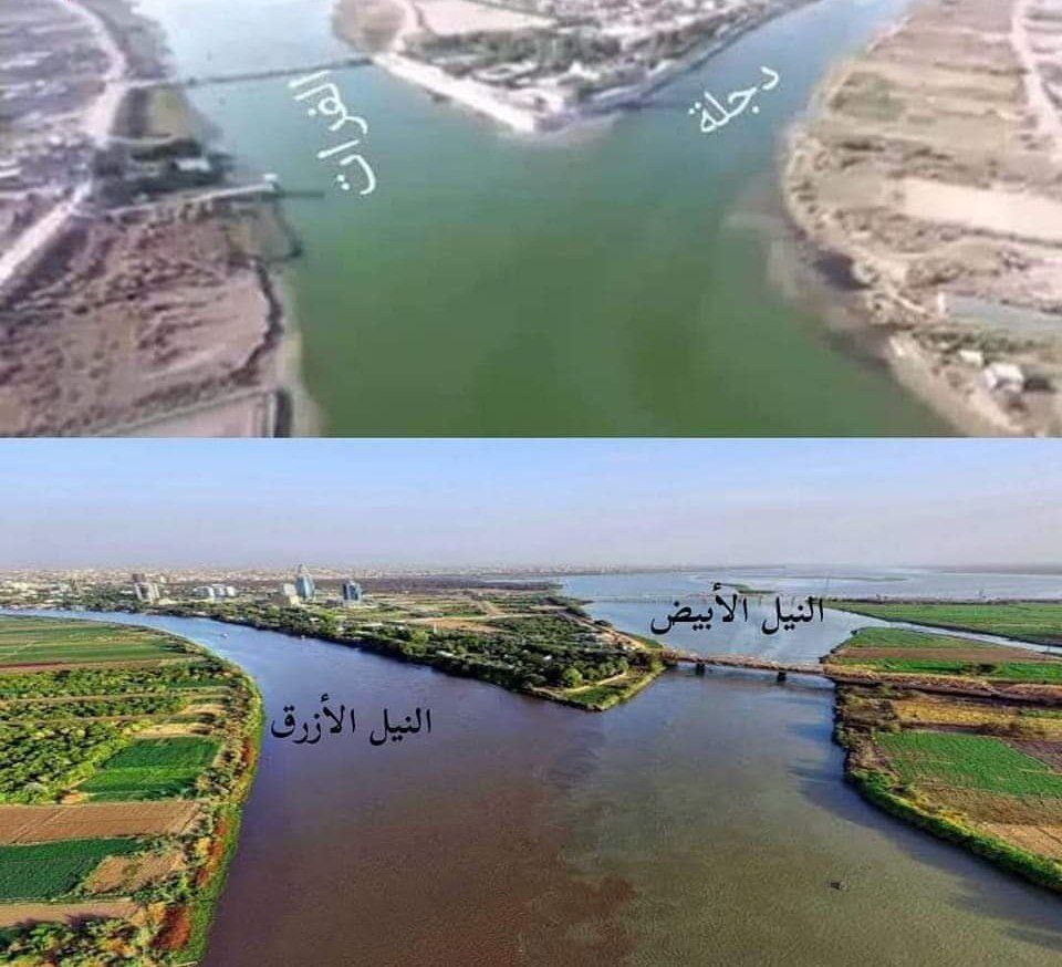 نقطة التقاء نهري النيل الأبيض والنيل الأزرق في الخرطوم ليكونا معا نهر النيل.