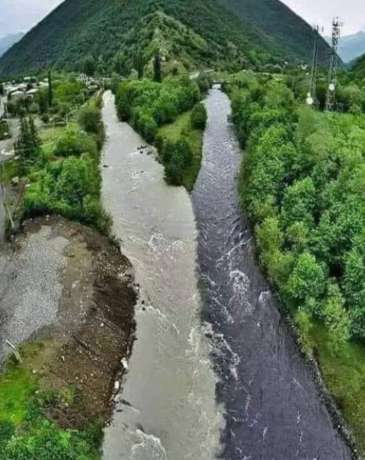 نهر أبيض و نهر أسود يلتقيان معا دون أن تختلط مياه كل منهما ،