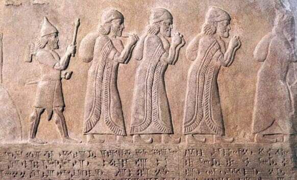 يظهر بعربته الملكيه ويراقب هجوم للجيش الأشوري (٧٢٢ _ ٧٠٥ ) قبل الميلاد نحت على حجر المرمر ...