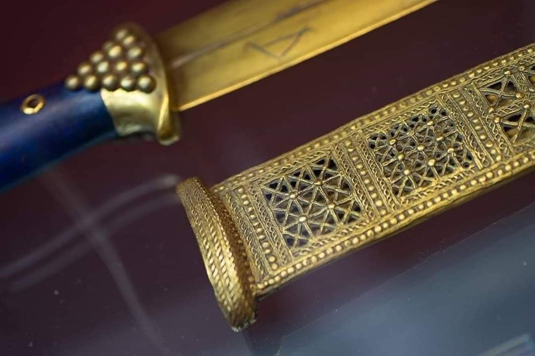 ‏الخنجر السومري المستخدم في الإحتفالات، مصنوع من الذهب و مقبضه مصنوع من اللازورد.