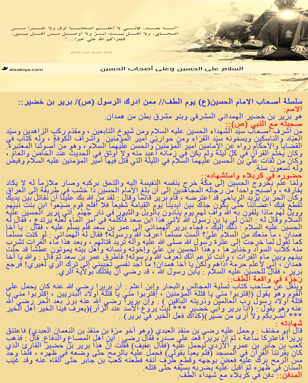 سلسلة أصحاب الإمام الحسين(ع) يوم الطف// ممن أدرك الرسول (ص)/ برير بن خضير::