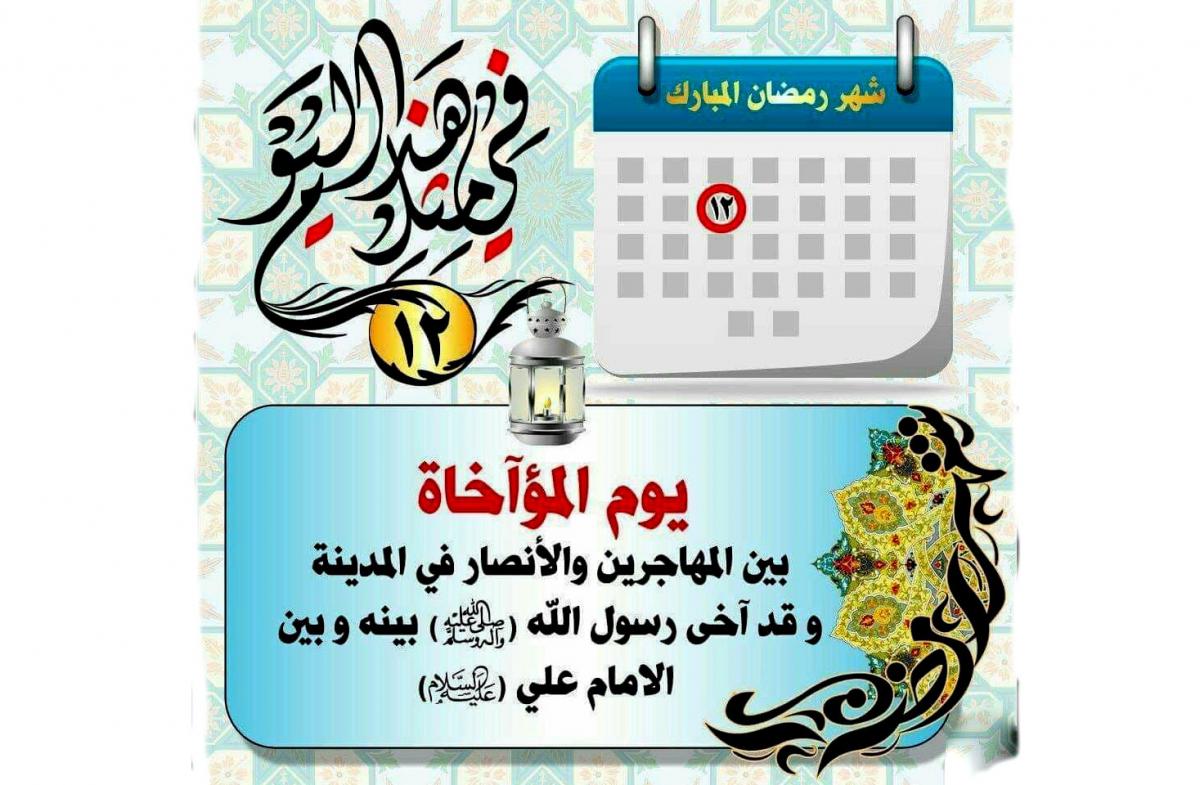 حدث في مثل هذا اليوم (12 رمضان):: *(1 هـ. مؤاخاة النبي صلی الله عليه وآله وسلم بين أصحابه، وبين نفسه وأمير المؤمنين (ع)).