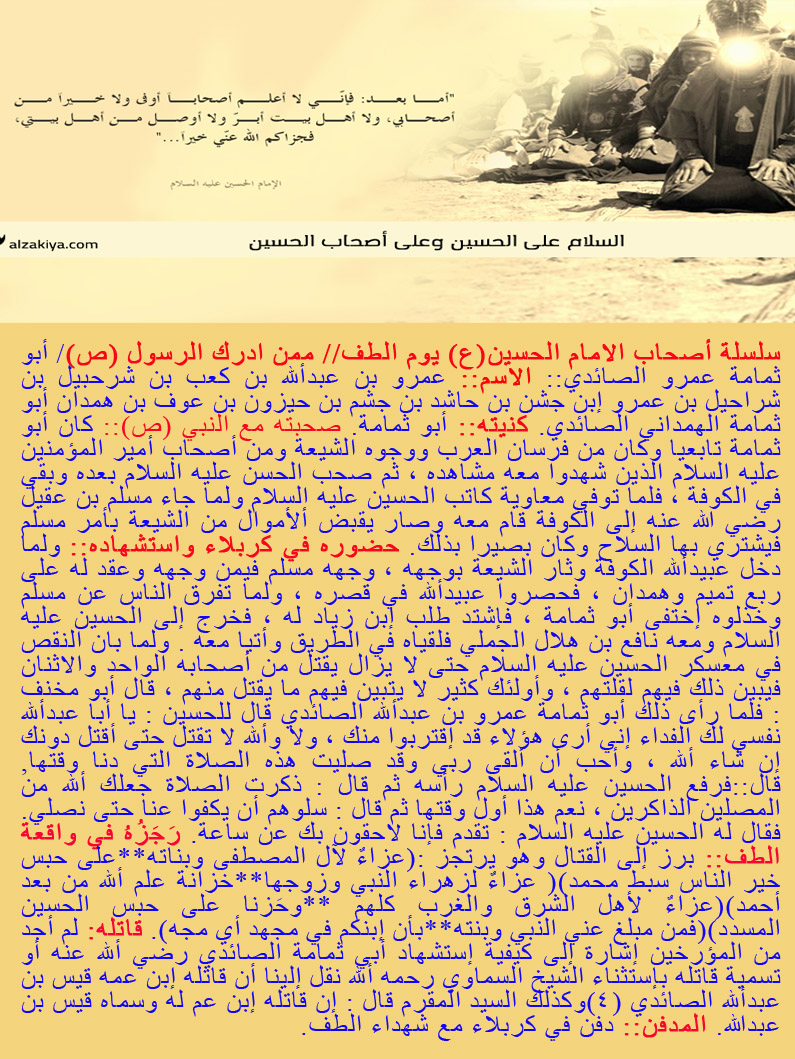 سلسلة أصحاب الإمام الحسين(ع) يوم الطف// ممن أدرك الرسول (ص)/ أبو ثمامة عمرو الصائدي ::
