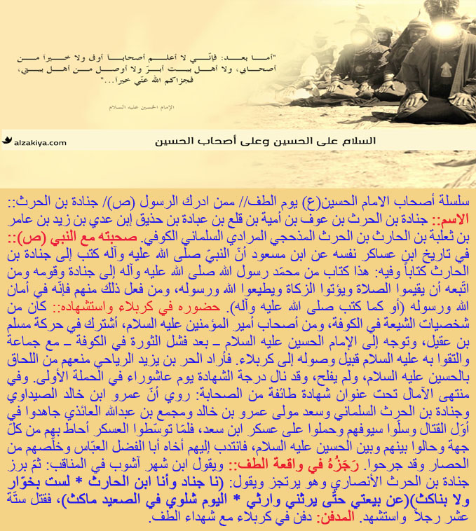 سلسلة أصحاب الامام الحسين(ع) يوم الطف// ممن ادرك الرسول (ص)/ جنادة بن الحرث::