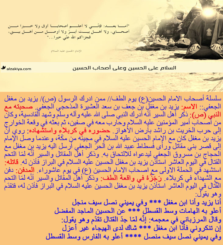 سلسلة أصحاب الامام الحسين(ع) يوم الطف// ممن ادرك الرسول (ص)/ يزيد بن مغفل الجعفي::