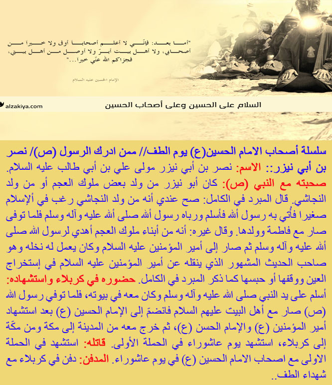 سلسلة أصحاب الامام الحسين(ع) يوم الطف// ممن ادرك الرسول (ص)/ نصر بن أبي نيزر::