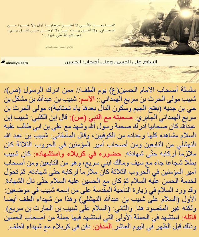 سلسلة أصحاب الامام الحسين(ع) يوم الطف// ممن ادرك الرسول (ص)/ شبيب مولى الحرث بن سريع الهمداني::
