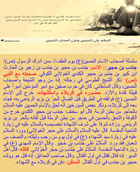 سلسلة أصحاب الامام الحسين(ع) يوم الطف// ممن ادرك الرسول (ص)/ جندب بن حجير::
