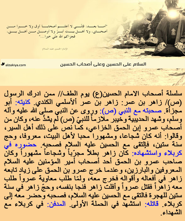 سلسلة أصحاب الامام الحسين(ع) يوم الطف// ممن ادرك الرسول (ص)/ زاهر بن عمر ألأسلمي الكندي.