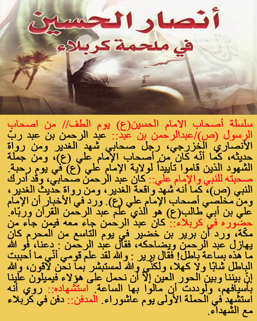 سلسلة أصحاب الامام الحسين(ع) يوم الطف// من اصحاب الرسول (ص)/ عبد الرحمن بن عبد رب الانصاري الخزرجي::