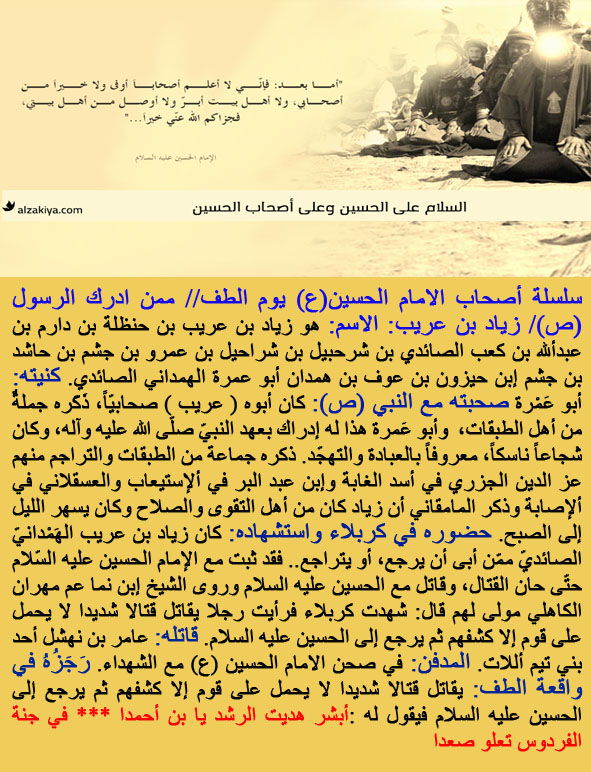 سلسلة أصحاب الامام الحسين(ع) يوم الطف// ممن ادرك الرسول (ص)/ زياد بن عريب:
