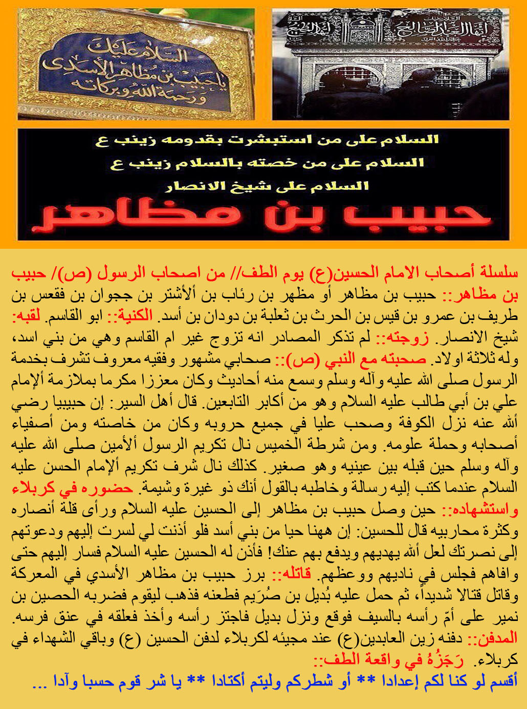 سلسلة أصحاب الامام الحسين(ع) يوم الطف// من اصحاب الرسول (ص)/ حبيب بن مظاهر.