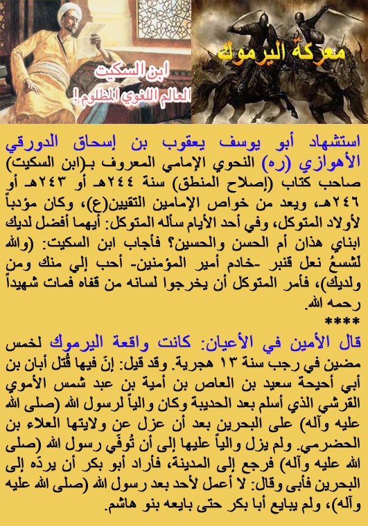 حدث في مثل هذا اليوم (12 رجب) :: *وفاة عم النبي(ص) العباس بن عبد المطلب بن هاشم بن عبد مناف سنة 32هـ، ودفن في البقيع إلى جنب الأئمة الأربعة(ع).