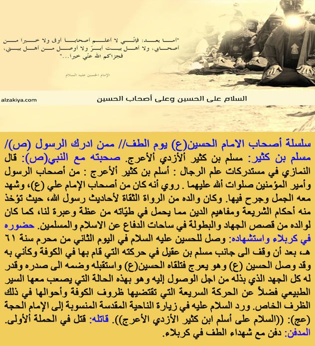 سلسلة أصحاب الامام الحسين(ع) يوم الطف// ممن ادرك الرسول (ص)/ مسلم بن كثير: مسلم بن كثير ألأزدي ألأعرج.