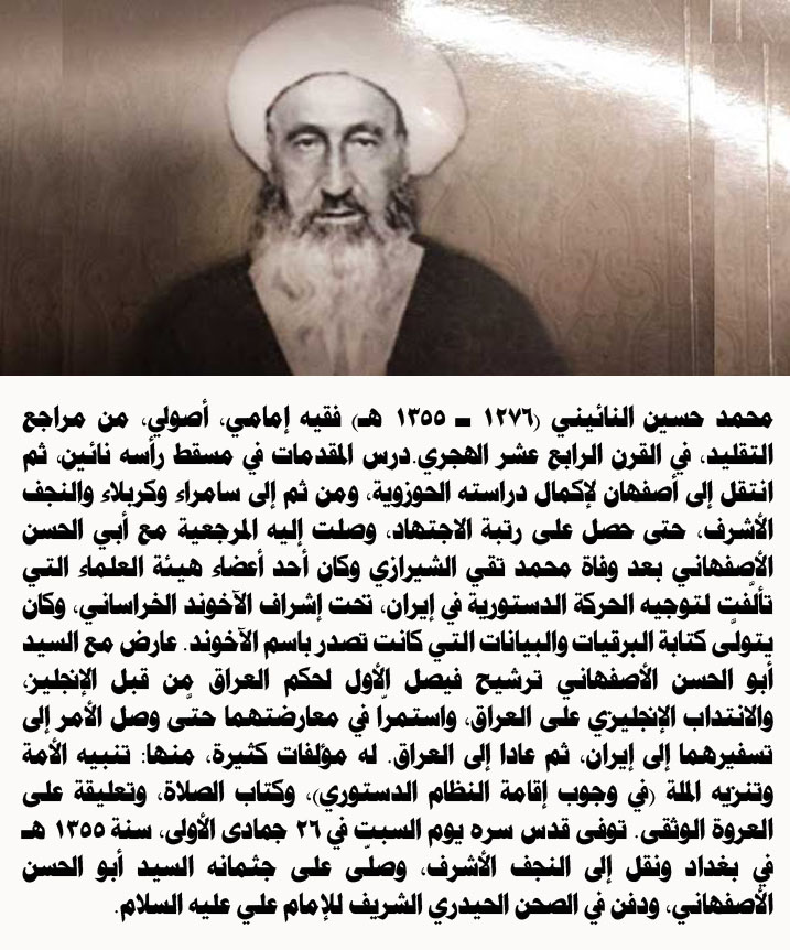 حدث في مثل هذا اليوم (26 جمادي الاول):: وفاة الشيخ محمد حسين النائيني .