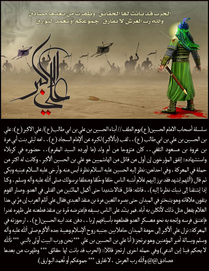 سلسلة أصحاب الامام الحسين(ع) يوم الطف// أبناء الحسين بن علي بن ابي طالب(ع)/ علي الاكبر (ع)::