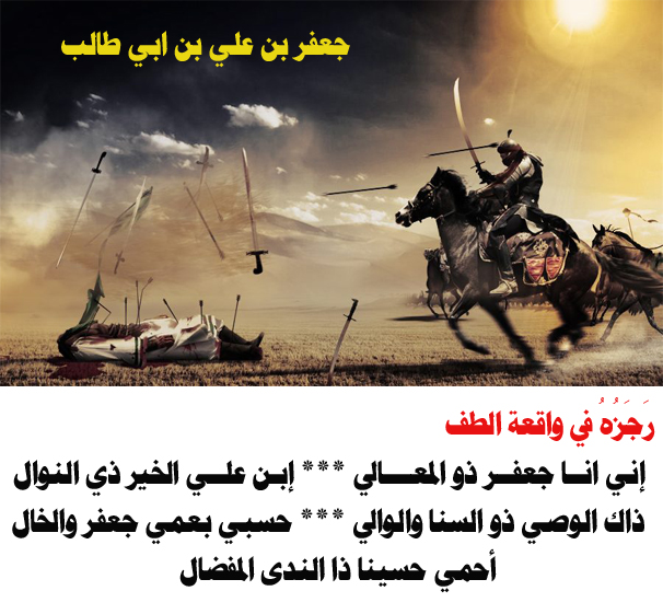 سلسلة أصحاب الامام الحسين(ع) يوم الطف// أبناء علي بن ابي طالب(ع)/ جعفر بن علي:: امه فاطمة بنت حِزام سليلة الشجاعة والنجابة والكرم، ام البنين سلام الله عليها حضوره في كربلاء واستشهاده/ كان عمره يوم الطف (19 سنة، وقيل 21 سنة) سماه أبوه أمير المؤمنين (جعفرا) تقدم للقتال بعد أن إستأذن ألإمام الحسين عليه السلام في ذلك بأمر من أخيه العباس عليه السلام، تمكن من قتل ما يقارب من ثمانية عشر رجلا. قاتله/هانئ بن ثبيت الحضرمي قتله وإحتز رأسه.وقيل خولي بن يزيد ألأصبحي.
