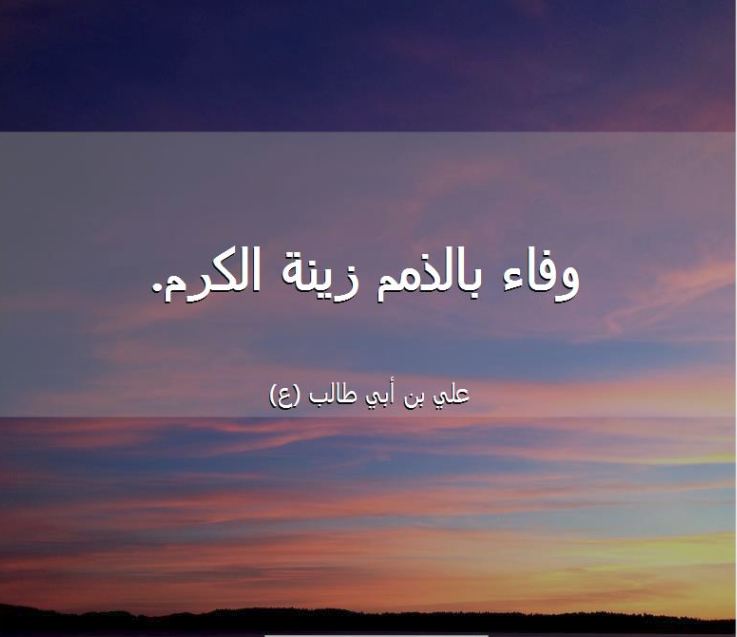 الوفاء بالعهد / قال الإمام علي عليه السلام : (الوفاء بالذّمم زينة الكرم) غرر الحكم ودرر الكلم للآمدي ص780.