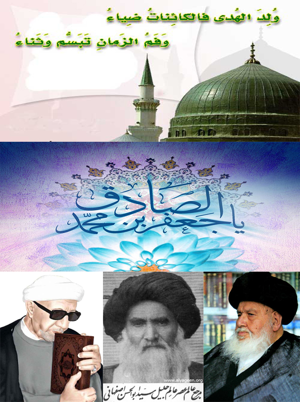 حدث في مثل هذا اليوم(17 ربيع الاول)::(مولد سيد الكائنات وأشرف الأنبياء والمرسلين منقذ البشرية من الضلالة النبي محمد بن عبد الله(ص) فجر يوم الجمعة في عام الفيل في (53 قبل الهجرة و40 قبل البعثة) الموافق 19/5/570م و7900 سنة و4 أشهر و7 أيام من وفاة نبي الله آدم(ع)في عهد السلطان أنوشيروان)(مولد سادس أئمة أهل البيت(ع) الإمام جعفر بن محمد الصادق(ع) سنة 83هـ أو 86هـ بالمدينة المنورة)(1946 - وفاة أبو الحسن الموسوي الأصفهاني)(1347هـ - ولادة الشيخ أحمد الوائلي)(1350هـ - ولادة السيد عباس الحسيني الكاشاني).
