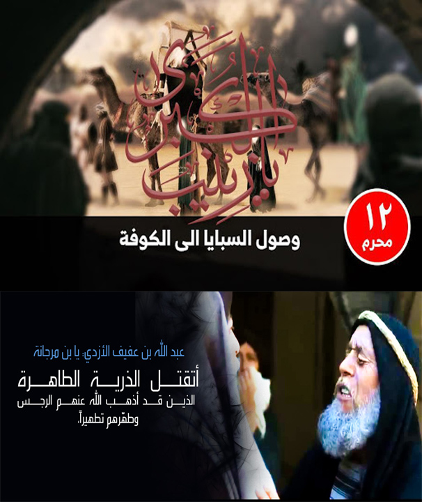 حدث في مثل هذا اليوم (12 محرم)::(61هـ هجرية دخلوا بعيال آل رسول الله صلى الله عليه وآله سبايا إلى الكوفة، وقد فرق ابن زياد في الكوفة عشرة آلاف من جنده، ونادى مناديه بمنع حمل أي شيء من السلاح لأي أحد من الناس حتى السيف والعصا كلّ ذلك خوفاً من الناس أن تحرّكهم الحمية على آل رسول الله(ص))(61هـ -قُتل عبدالله بن عفيف الأزدي وسبب شهادته: ان عبدالله رد كلام ابن ابن زياد بعد ان صعد المنبر وقد اتهم ال البيت بالكذب وقال له(يابن مرجانة الكذّاب أنت وأبوك ....) فقتله ابن زياد لعنه الله .