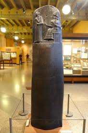 مسلة حمورابي: صنعت المسلة من حجر الديورانت الأسود طولها 225 سم وقطرها 60سم وهي اسطوانية الشكل رتبت في 44 حقل كتبت باللغة البابلية والخط المسماري تحتوي على 282 مادة ومن المرجح انها كانت تحتوي على 300 مادة في القسم الأعلى من المسلة نحت يمثل الاله شماس اله الشمس جالسا على عرشه يسلم حمورابي الواقف امامه بخشوع نص القوانين وصولجان الحكم بدأت المسلة بمقدمة ومن ثم القوانين التي يحكم بها البلاد وخاتمة طويله يذكر بها اعماله وبطولاته وانجازاته وجدت المسلة في مدينة سوسه عام 1902وهي الان في متحف اللوفر .