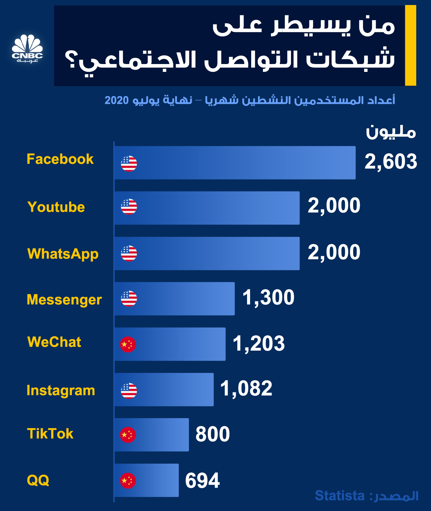 تطبيقات شركة Facebook تسيطر على نحو 3 مليارات مستخدم لشبكات التواصل الاجتماعي ..