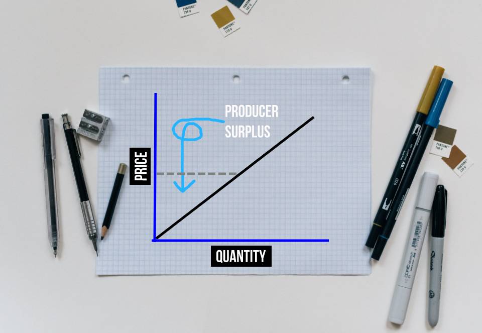 يزداد حجم فائض المنتَج وتمثيله على الرسم البياني بزيادة سعر السوق للسلعة الجيدة، ويقل حجم الفائض بانخفاض سعر السوق للسلعة.