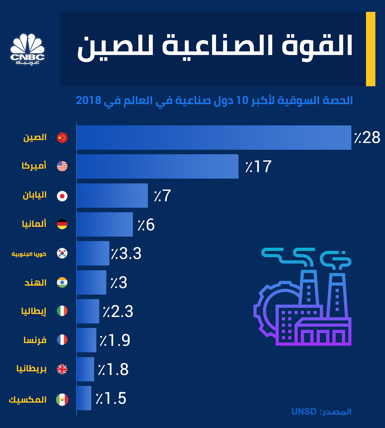 الحصة السوقية لأكبر 10 دول صناعية في العالم في عام 2018 ...