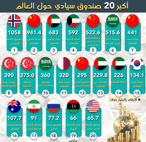 صناديق الثروة السيادية: هي صناديق استثمارية تملكها الدول ولكنها لا تكون تابعة لوزارات المالية أو البنوك المركزية وتأتي أغلب مواردها من إيرادات المواد الأولية وعلى رأسها النفط، والهدف هو إدارة واستثمار جزء من الفوائض المالية للدولة وفق خطة تجارية ربحية في عمليات استثمارية ذات أمد طويل خارج دول المنشأ.