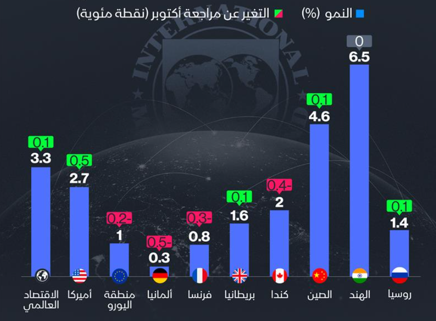 #صندوق_النقد_الدولي يرفع توقعاته لنمو اقتصادي #أميركا و #الصين، ويخفضها لمنطقة #اليورو في 2025