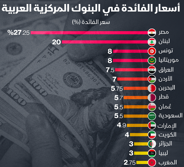 أسعار الفائدة الحالية في البنوك المركزية العربية .