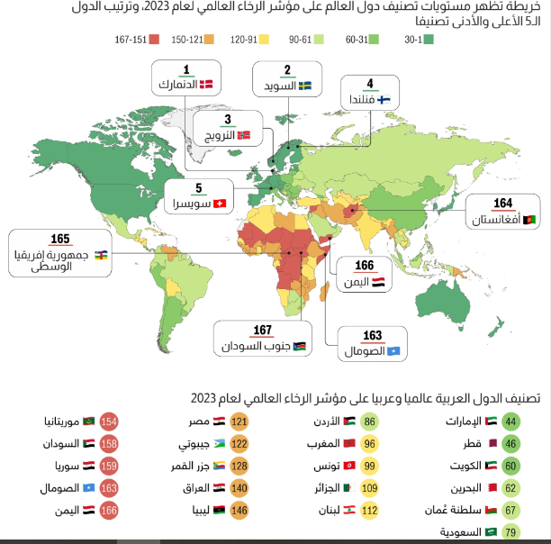 تصدرت الإمارات المركز الأول عربيا على مؤشر الرخاء لعام 2023، والمركز 44 عالميا. تلتها قطر الثانية عربيا وفي المركز الـ46 عالميا حسب مؤشر الرخاء أو الازدهار التابع لمعهد ليغاتوم "Legatum".ويصنف معهد ليغاتوم ومقره المملكة المتحدة، 167 دولة. ويقيس عدة معايير أهمها مدى جودة الاقتصاد، وسهولة ممارسة الأعمال، وتحقيق الأمن والأمان والرعاية الصحية والتعليم، وبيئة الأعمال والحوكمة وكذلك الحريات الشخصية.