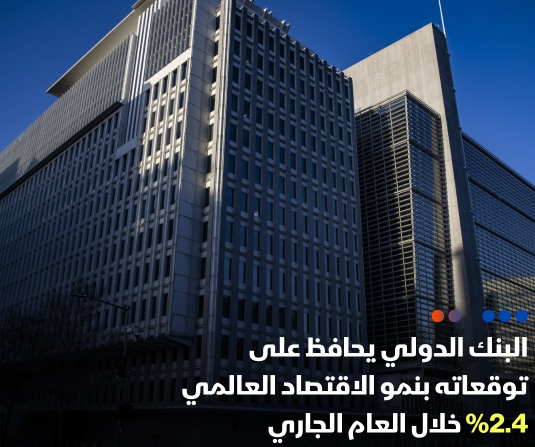 البنك الدولي يتوقع نمو الاقتصاد العالمي 2.4% خلال عام 2024 دون تغيير عن تقديرات يونيو 2023،ويخفض تقديراته للنمو في العام المقبل من 3% إلى 2.7%. بحسب تقديرات البنك الدولي، فإن الاقتصاد العالمي من المتوقع أن ينمو 2.2% خلال الخمس سنوات(2020-2024)،وهي أدنى وتيرة توسع لفترة 5 سنوات منذ الفترة (1990-1994) عندما بلغ النمو 2.1%. فيما رفع #البنك_الدولي توقعاته لنمو اقتصاد منطقة الشرق الأوسط وشمال أفريقيا إلى 3.5% خلال العام الجاري وللعام المقبل من 3% إلى 3.5%، بافتراض عدم تفاقم الصراع في المنطقة.