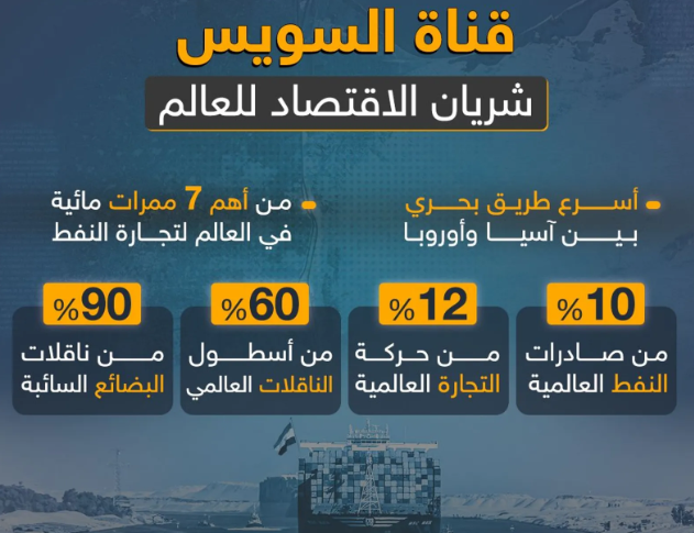 قناة السويس تُعد أسرع طريق بحري بين #آسيا و #أوروبا ويمر عبرها 10 بالمئة من صادرات النفط العالمية.