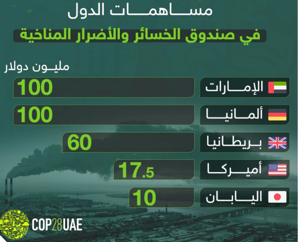 الإمارات ترصد 100 مليون دولار كمساهمة في صندوق الخسائر والأضرار المناخية.