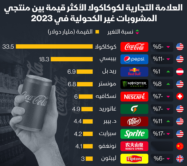 تعرف على العلامات التجارية للمشروبات غير الكحولية الأعلى قيمة عالمياً في 2023
